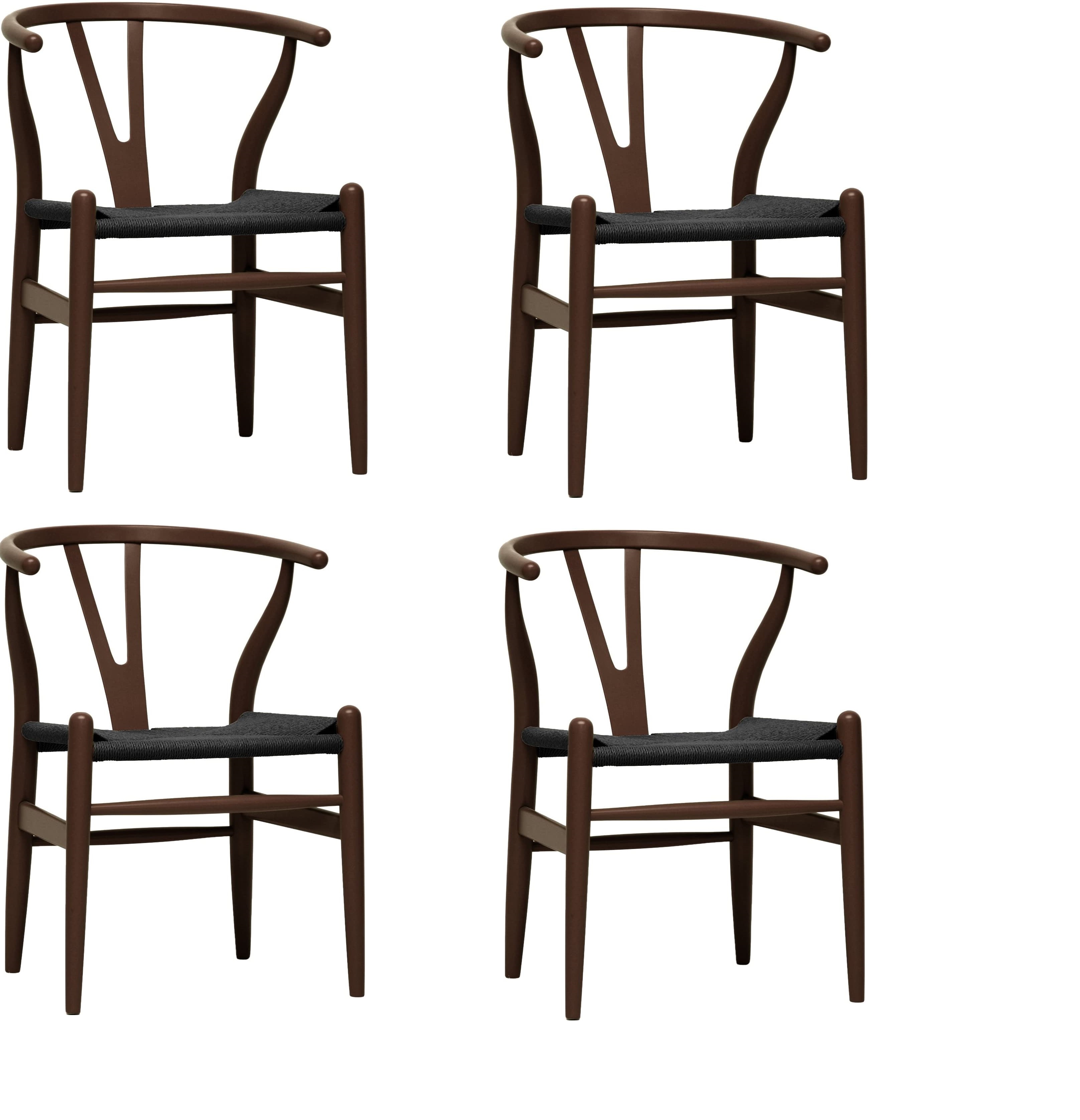 The frame consists of solid wood with a natural finish a comfortably-curved backrest and sturdy natural hemp seat. This item will arrive fully assembled. Wishbone Mid-Century Dark Brown Finish Wood Chair 2-Piece Set This dining chair features traditional wood This dining chair features traditional wood and is paired with a modern design resulting in a unique piece for your home.